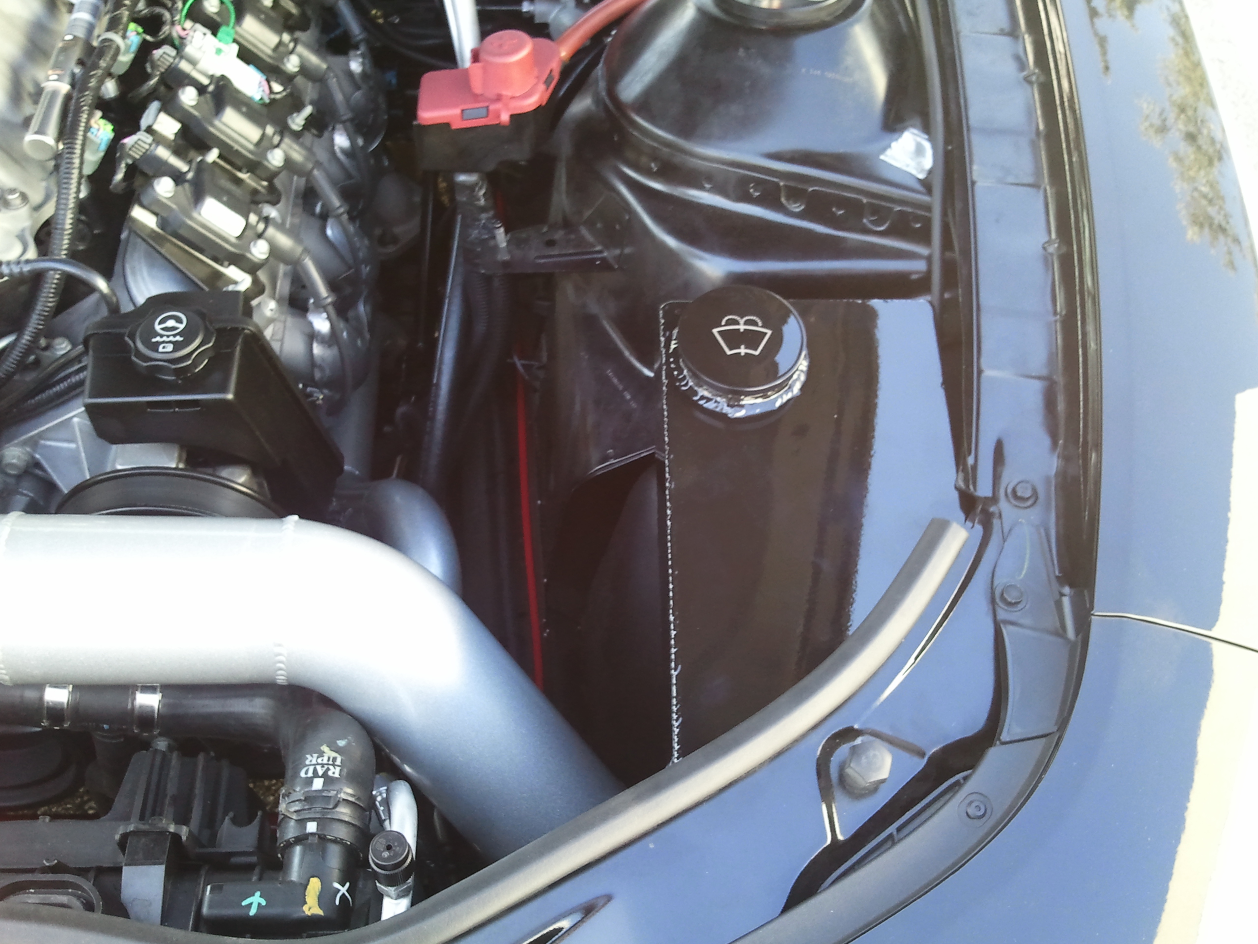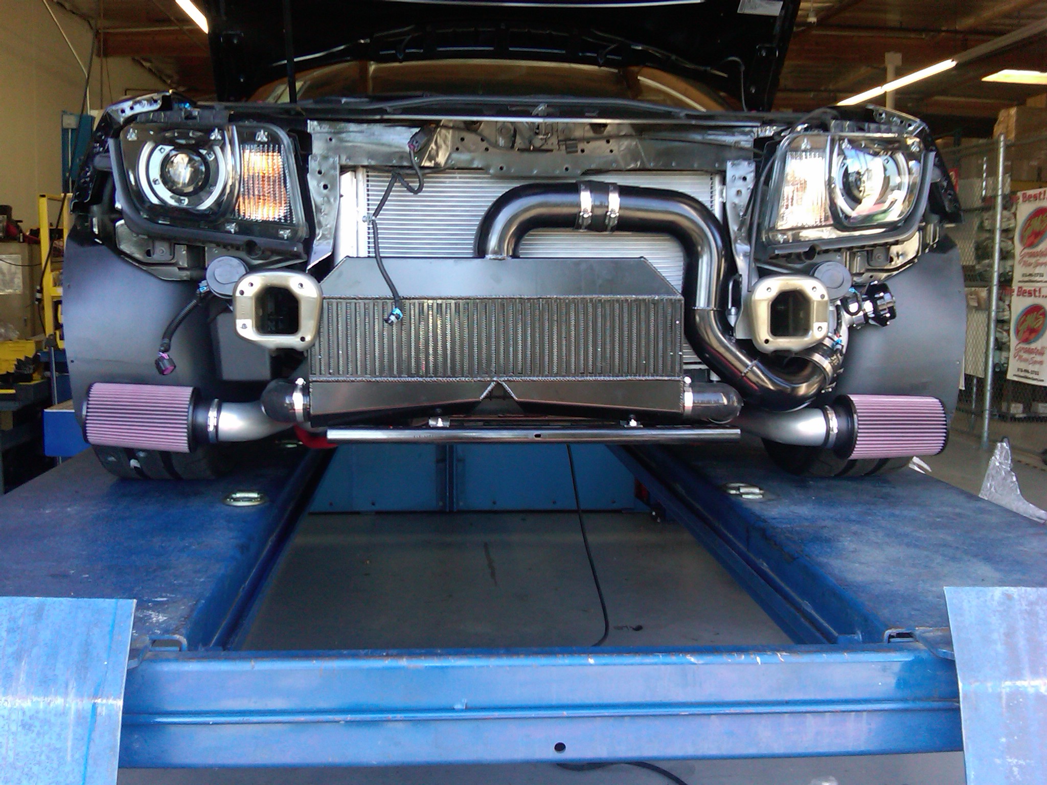 Ryan from Oakley Sunglasses was definitely going after the sleeper look with his 2010 Camaro that looks all stock from the outside (including the rims, except widened in the rear and painted black) but there is nothing stock beneath the factory hood! A 417 stroker would normally be enough for some people to brag about but this package was taken to the next level with the addition of a twin turbo kit, meth injection, zr1 fuel system, a complete suspension, and chassis stiffening. There is something to be said about having over 700hp on tap and running pump gas! Want more?? Add more boost and race fuel and this is one black beauty you wished you would have never messed with!