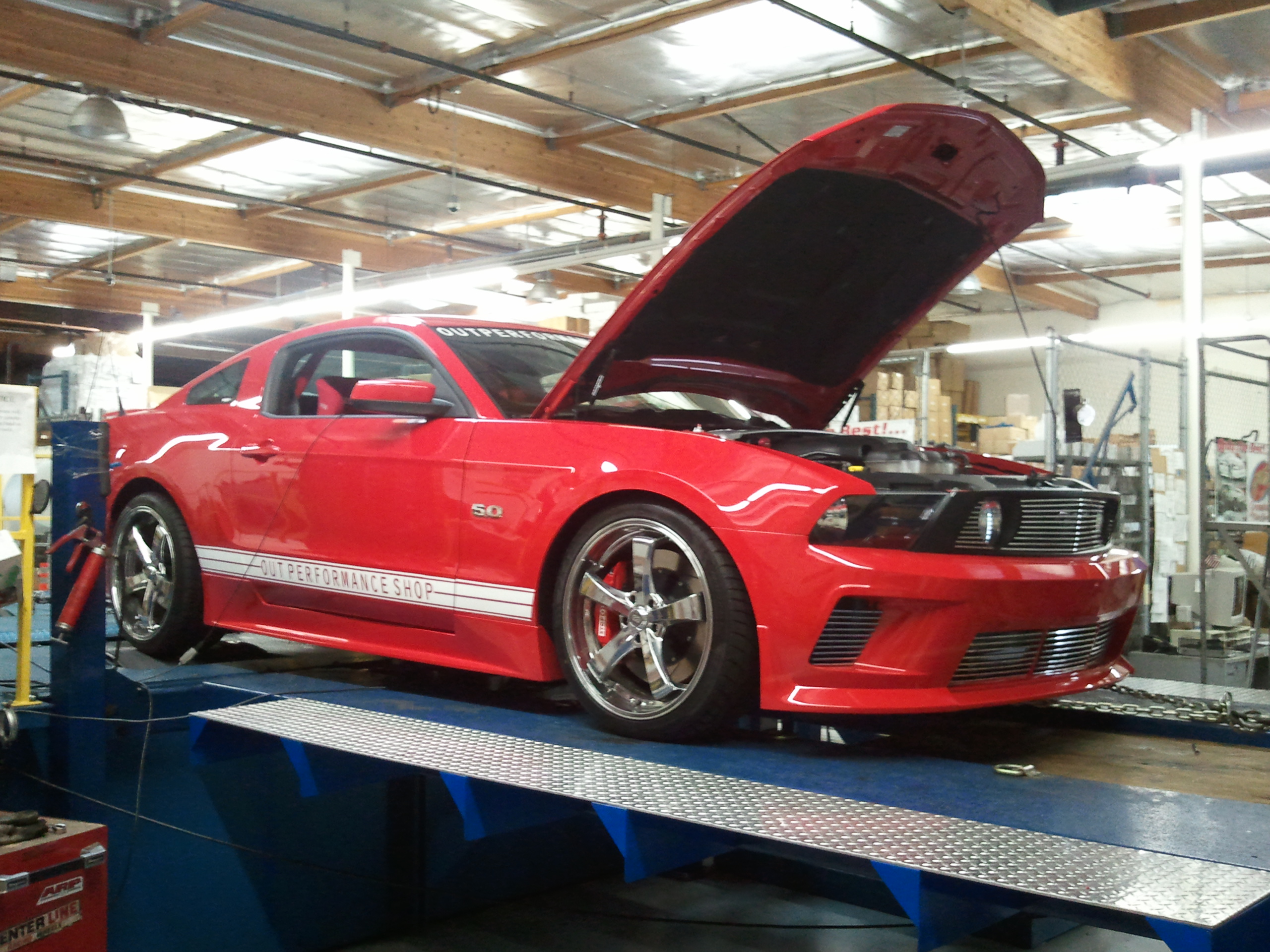 Manufacturers rate their vehicles low often but this is a little extreme! Checkout the torque, 377, this is the number Ford chose to use on low octane to rate the 5.0 but at the crank not at the rear wheels! The 5.0 is going to be a great foundation for power adders and it won’t be long before many shops across the country go after the “fastest 5.0 in the country” title. A GMS Twin Turbo kit was one of a few parts I installed on this car and after I dialed her in with only 6# of boost it ended up with well over 500rwhp on 91 octane fuel. If your heading to SEMA this year make sure you stop and check this car out!
