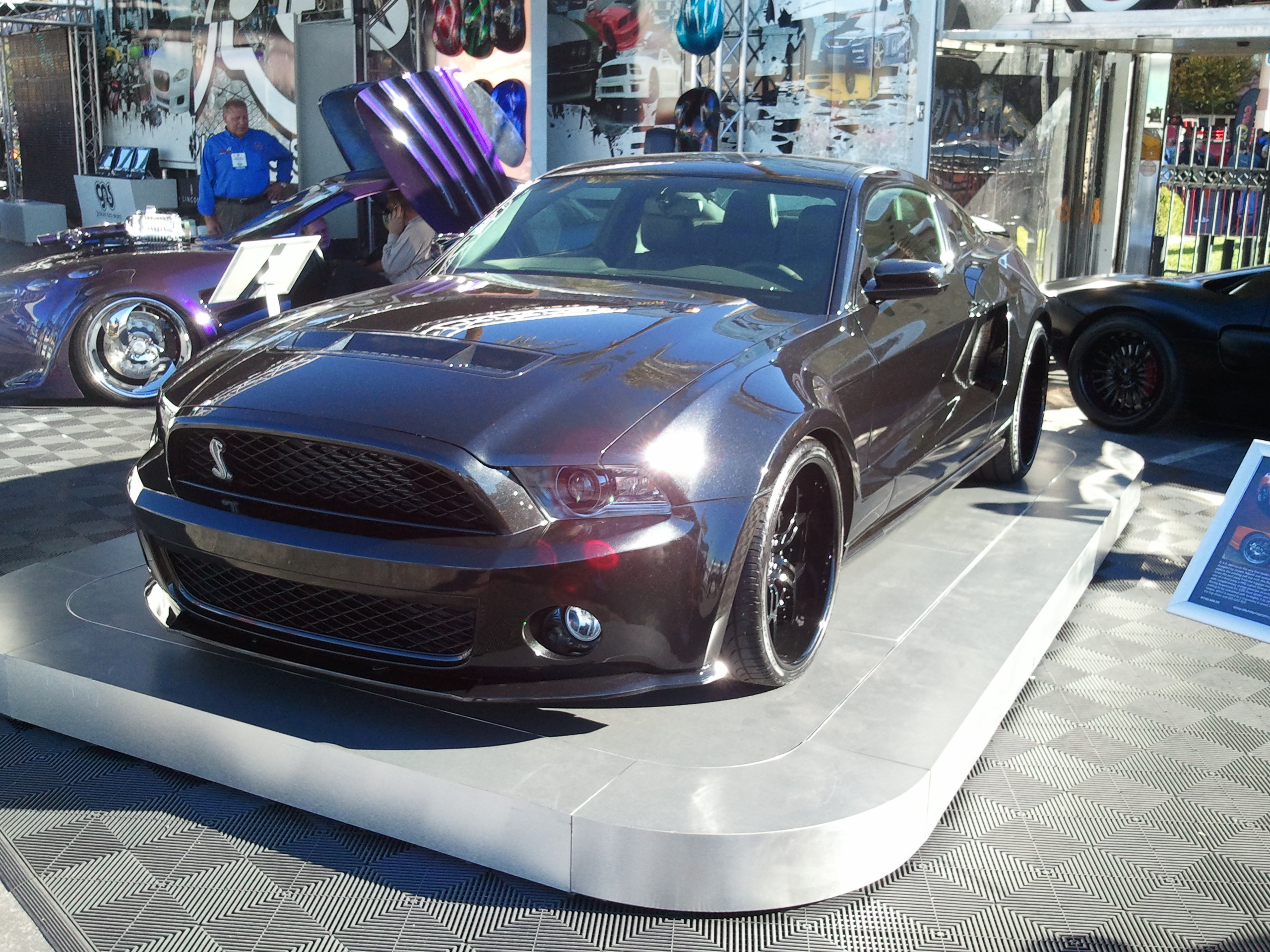 With the new 5.0 engine release from Ford I figured we would see alot of Mustangs and I hit the nail on the head. It seemed like every row had a tricked out Mustang or a Camaro on display. Although I am not going to bog you down with loads of car pics that will rub it in the face of all those that could not attend, I will leave you with one that I fell in love with…Galpin Auto Sports’ wide body GT500. This car is off the hook. I am not usually into wide bodies but this car has such style I couldn’t help but give it mad props!