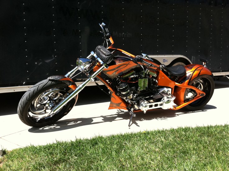 I developed a few motorcycle products and with a last minute decision to go to Sturgis I needed a hot bike to attract attention to my products so I was all over the net looking for a bike to fit the bill. I came across this Pro Street bike in Wisconsin that was built by a guy at his house.