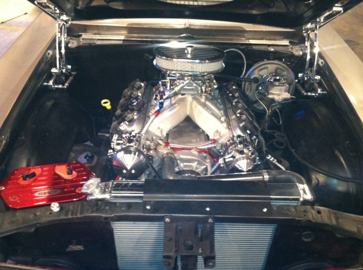 I do a fair amount of these conversions (modern drivetrain in a classic ride) and when Brad asked if I thought it was going to be a smooth build since everything was supplied I knew right from the start that we were going to be doing alot of fabricating to get those bad boys to fit because it was clear to me that the oil pan that was supplied was not even close. Nova’s have the steering linkage located behind the k-member which means the oil pan has to be a custom design and what they supplied was a stock looking rear sump. Most other GM’s in that era have the steering linkage in front of the k-member so the oil pan supplied would have worked. Brad and his team were wise to grab the big cowl hood for clearance because it proved to be an asset!
