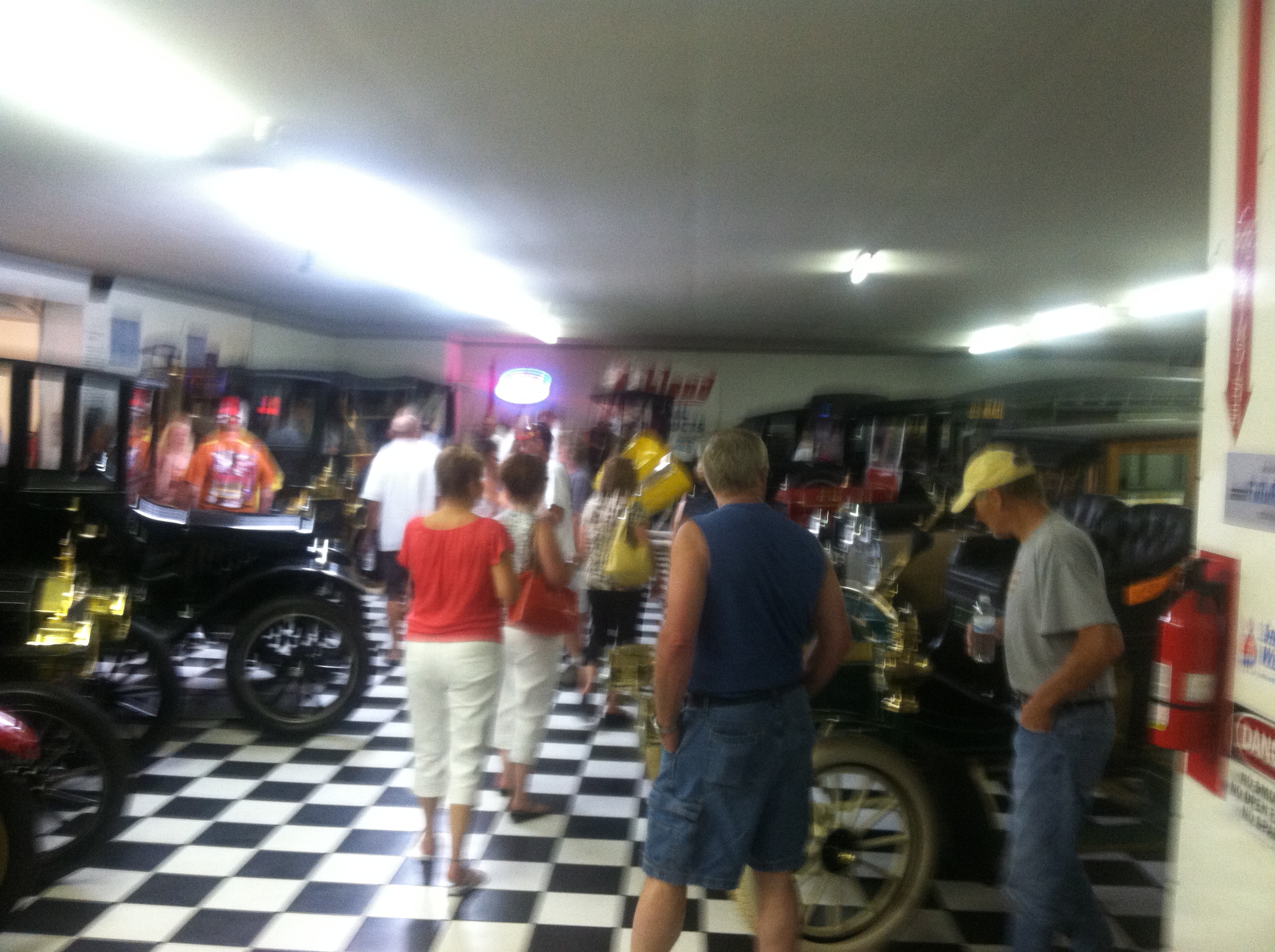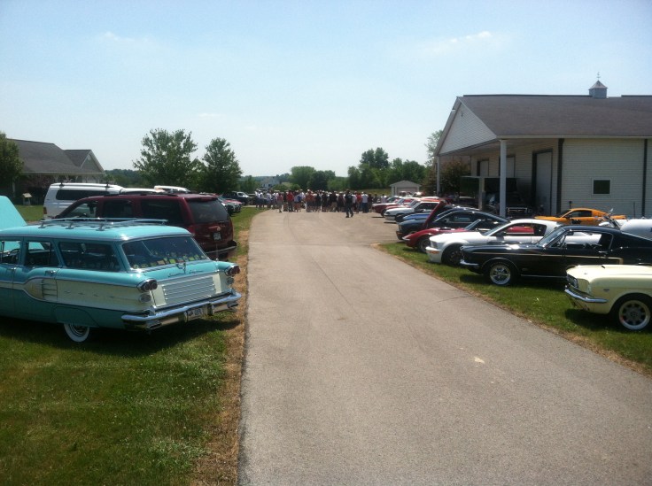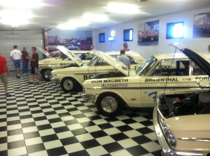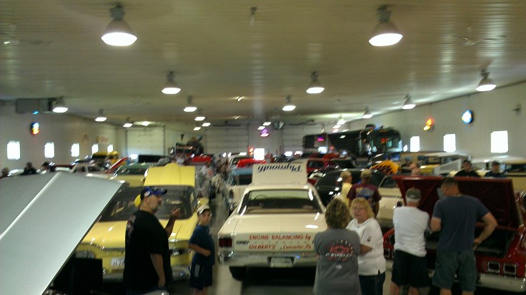 I am going to guess here and say there were at least 60 or so cars that made the back road cruise to Don’s house in Ohio from Pa and when we got there we all said the same thing…”Do you know how many times I have passed this place and never knew it was here?!” Don’s house has a long driveway from the main street that takes you back to the huge buildings that house this amazing collection. This is a good thing we found out because the tradition is, after seeing the collection, everyone has to take turns doing a “top fuel” burn-out in his driveway! I hear the rubber coating is good for “sealing” the driveway! HaHa