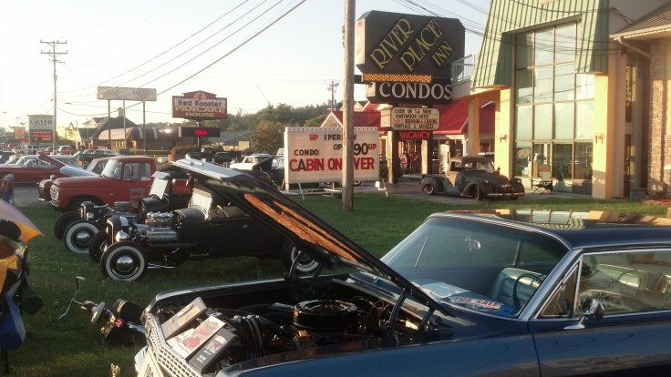 It was just our luck that there was a huge annual car show going on in Pigeon Forge. “Shades of the Past” is in it’s 30th year and a show that brings thousands of people from all over the country. It reminded me of growing up and going to a show back home called the” Hot Rod Nationals” where after the show spectators lined their folding chairs along the main 4 lane road to gaze at the bumper to bumper, rows of classics and customs. Be prepared to sit in traffic for hours just to go a few miles in both directions. Jr and I walked for miles checking out the cars each evening and talking to some really cool people. The biggest thing we both commented on was the attitude of the people. The locals and tourists alike were so laid back and genuinely pleasant. It’s a nice feeling when people smile and say hello as you walk by or hold a door for you when you are walking into a restaurant. They are all here to enjoy the beauty Tennessee has to offer. I travel around the US a fair amount and I can tell you first hand that there are not many cities like this anymore.