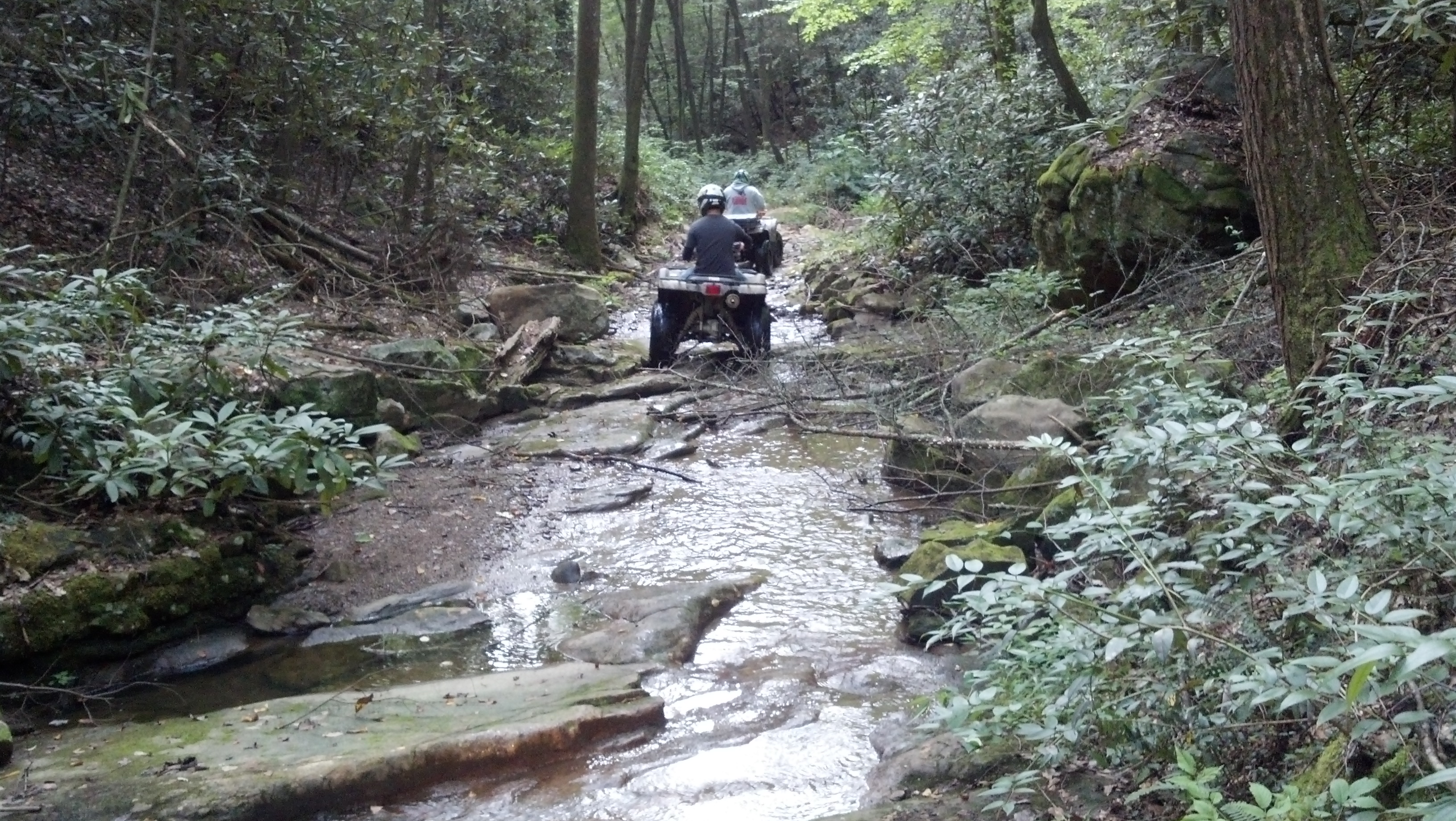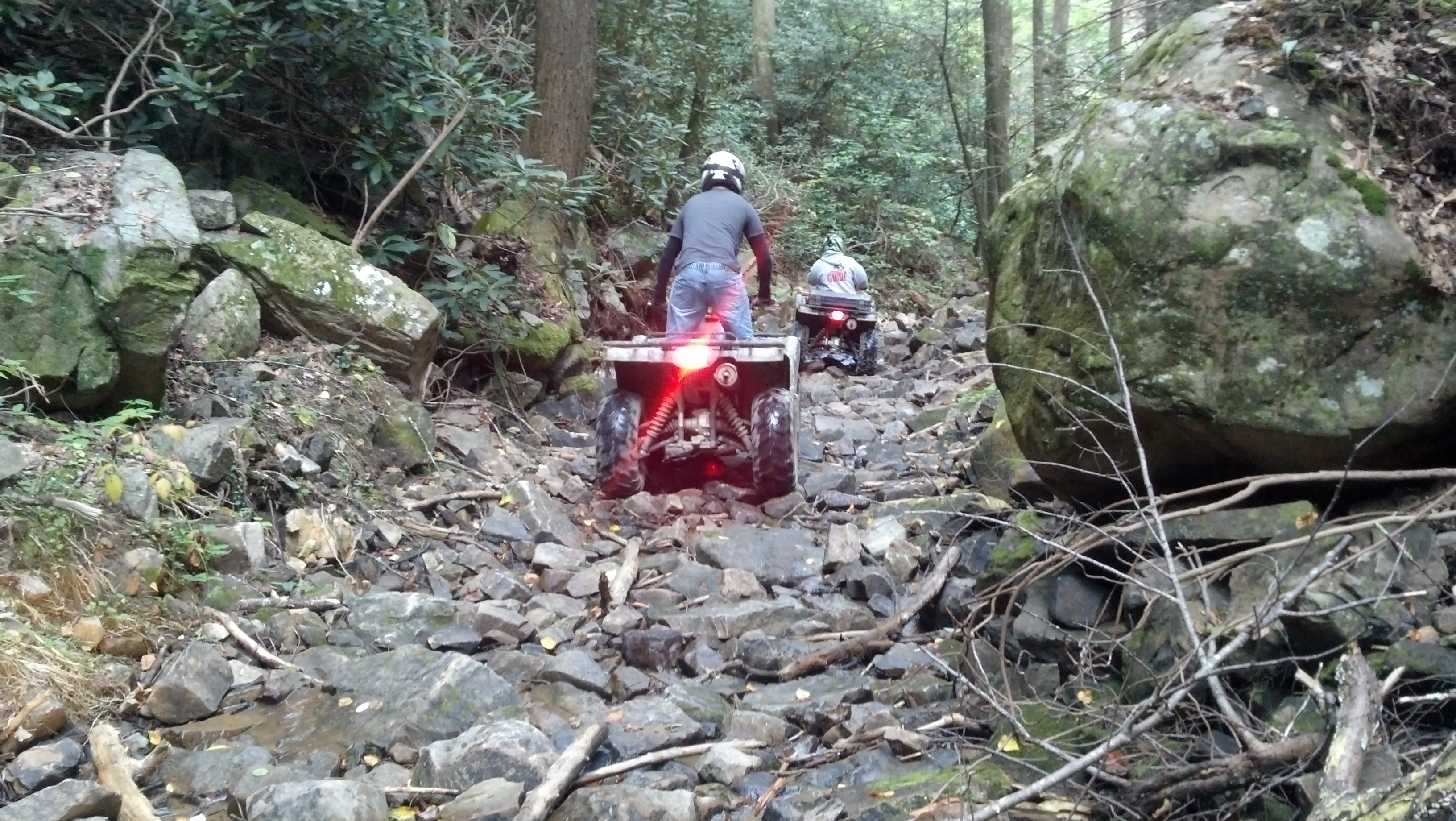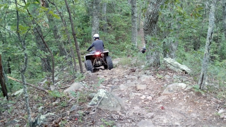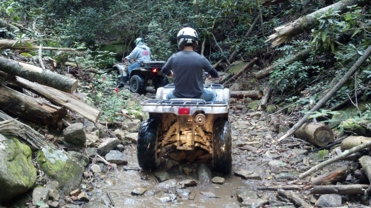 I booked an ATV tour for Saturday morning, I know what you are thinking and it was my thought as well….any kind of atv “tour” is boring and you end up with a guide that goes too slow and it is not really enjoyable so I contacted Cindy at Bluff Mountain Adventures and explained our concerns. After talking about our riding experience and the type of ride I was hoping for, she suggested a “Custom Tour” for 3 hours. I figured what the hell, if it isn’t trailblazing fun then at least the view would be great since part of the tour took us to the top of the ridge mountain. Turns out we had one of their veteran guides, Dennis. He put together a Kick Ass ride for us and the speed was perfect for the terrain, moderate with a few stops to check out the views. I wish I could have taken more pictures and videos..mainly one of us riding down the hill through a rocky waterfall…absolutely beautiful!