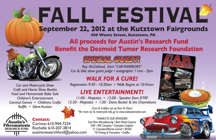 Even though Austin was in the midst of going to Chemo during this time frame he still dug deep in his heart to try and make a difference too…a difference in another child’s life by helping to find a cure. You see, he asked his mom to start this event a few years back in hopes that one day he could save a young child from having to go through the pain and agony that he has since age 10. You read that right, age 10 and having a 6# tumor! Austin is 17 now and still fighting for his life. Please take a few minutes after reading this post to learn more about Desmoid Tumors and pray you never meet someone that has to go through this.